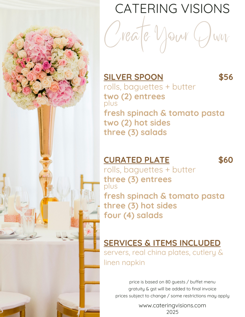 Create Your Own Catering Visions#1-13375 115th Ave.Surrey, BC V3R 0R8info@cateringvisions.com Contact UsCatering Visions Availability Request NAME PHONE EMAIL Venue Dietary Instructions Number of expected Guests Event Date ADDITIONAL INFORMATION MENU ITEMS MENU ITEMS Weddings & Events Corporate Catering BBQ Catering Christmas Catering Memorial & Other SUBMIT REQUEST