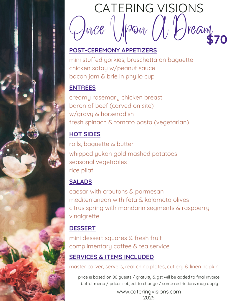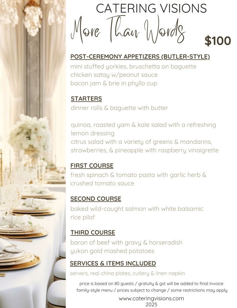 2 & 3 Course Menus Catering Visions#1-13375 115th Ave.Surrey, BC V3R 0R8info@cateringvisions.com Contact UsCatering Visions Availability Request NAME PHONE EMAIL Venue Dietary Instructions Number of expected Guests Event Date ADDITIONAL INFORMATION MENU ITEMS MENU ITEMS Weddings & Events Corporate Catering BBQ Catering Christmas Catering Memorial & Other SUBMIT REQUEST
